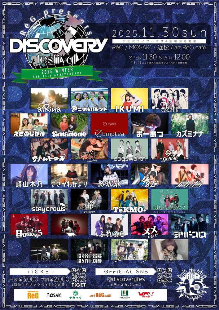 RéG presents『DISCOVERY FESTIVAL 2025 WINTER』-RéG 15th Anniversary- 出演決定(10/15更新)
